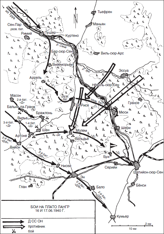 1. Враг отступает в полном беспорядке по всему фронту, очевидно за Луару. Следует ожидать, что отступающие с северо-востока вражеские колонны, обходя с обеих сторон Труа, 16 июня наткнутся на дивизию СС особого назначения.
