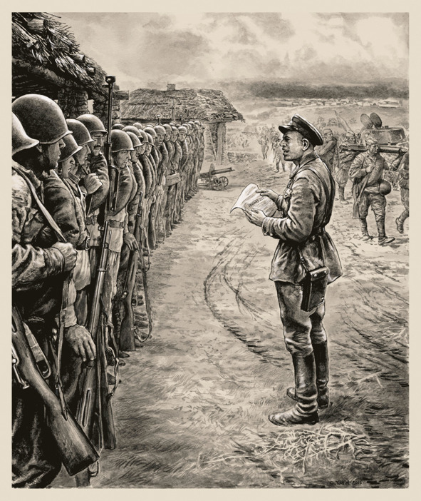 – Значит так, сейчас, называю, фамилии и те отправляются с капитаном Смирновым. Санинструктор Денисенко! Шаг вперед. Санинструктор Колобанов, шаг вперед. Санинструктор Петровский выйти из строя! Вы направляйтесь в 331-й стрелковый полк, 23 отдельный медико – санитарный батальон в первую роту. Всё! Шагом марш!