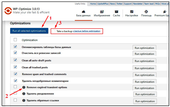 2.WP-Optimize – Плагин для очистки базы данных. По сути, он нужен-то один раз в месяц.
