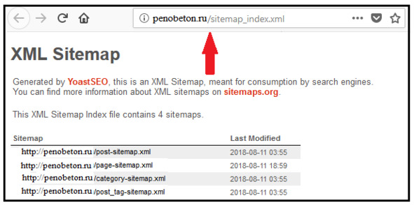 Вверху копируем адрес нашей XML карты.