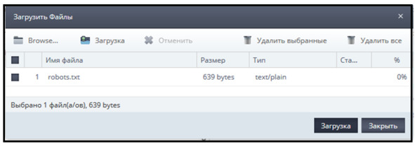 Жмём Загрузить файлы. На компьютере находим наш файл robots. txt
