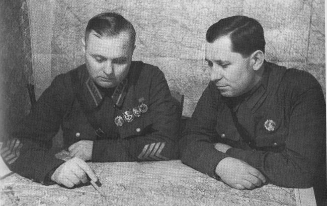 Командующий 7-й армией командарм 2-го ранга КА. Мерецков и член Военного совета 7-й армии Т.Ф. Штыков