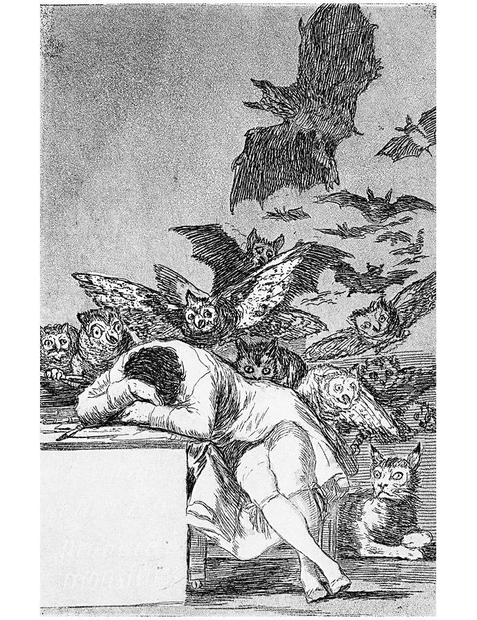 Давайте взглянем на знаменитый офорт позднего Франсиско Гойи «Сон разума рождает чудовищ», созданный по горячим следам Французской революции в 1797 году.