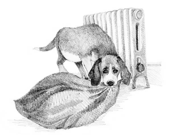 Тяжело ступая, Белла выбралась из-под стола и поплелась к своей подстилке – большой и мягкой, из приятной красной ткани. Собачка ухватила её за край зубами и подтащила ближе к батарее. А потом принялась тыкаться в неё носом, укладывая то так, то сяк, но положение подстилки решительно её не устраивало.