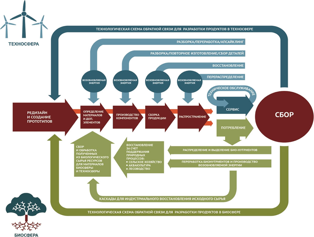 Авторы этих двух книг – дизайнеры, химики, экологи и эксперты энергетической эффективности, они достигли успеха в производстве, энергетических предприятиях, дизайне продуктов и услуг, и не только. Но сфокусировались они на традиционной экономической перспективе. Она была «эко-современной», а не «эко-иной». С 2010 года эта работа с циклической экономикой на Западе активизировалась: после финансового краха 2008 года, из-за волатильности поставок ресурсов и их цен, из-за растущего спроса и потенциала, возникшего в пору расцвета цифровой эры. Такие организации, как фонд Эллен Макартур[22], исследовали и сформировали фундаментальную и актуальную картину бизнеса и традиционной экономической системы для циклической экономики, при этом сохраняя форму «системной» перспективы и показывая области перекрытия в этой современной концепции.
