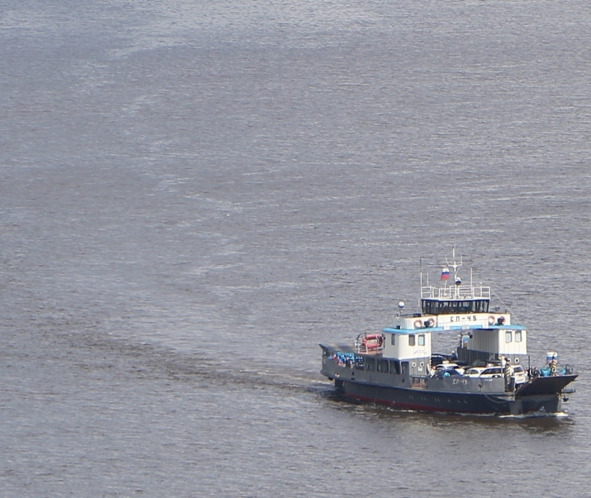 Много раз приходилось переправляться на несамоходной барже в связке с речным толкачём РТ-815. Здесь для легкового автомобиля свои тонкости. Стоишь в очередь на паром и ждёшь. И даже если подошла твоя очередь пропускаешь одну, две грузовые машины пока поверхность парома не сравняется с поверхностью причала. Да ещё въезжать на паром нужно под углом в сорок пять градусов, чтобы одно переднее колесо было уже на пароме, а другое ещё на причале. Итак – блин, блин, блин, блин передними и задними колёсами, как по клавишам музыкального инструмента.