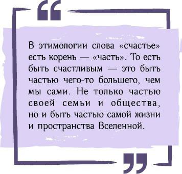 А ведь слово «счастье» можно расшифровать как «сейчас я есть». Счастье – это когда ты целиком в «сейчас», а не где-то еще. Прошлого уже нет, а будущего еще нет, поэтому и нас самих там быть не может, там нет нашей жизненной силы и нашей живой сиюминутной, вибрирующей реальности. Как можно быть счастливым фактически в небытии?