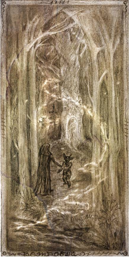 Коротышки усадили Къельта и Эрсиль в середине поляны, заключили их в кольцо и взялись потчевать. Услужливый карлик с лицом, облепленным дубовыми листочками, поймал светляка и протянул его Эрсиль со словами: