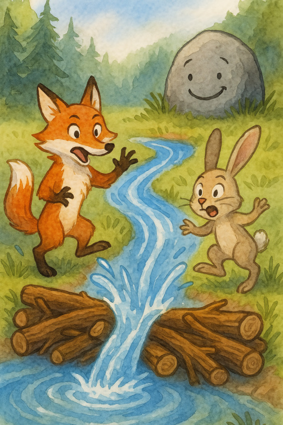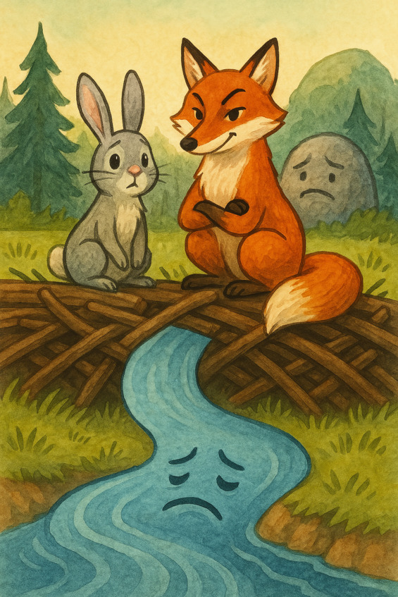 Лисичка предложила Зайчишке план: ограничить Воду, поставить вокруг неё преграды, чтобы она текла только в том русле, которое укажет Зайка. А вокруг Камня построить Стену, ведь если Вода свободна, она может сбежать – убеждала Лисичка. Зайчишка задумался.