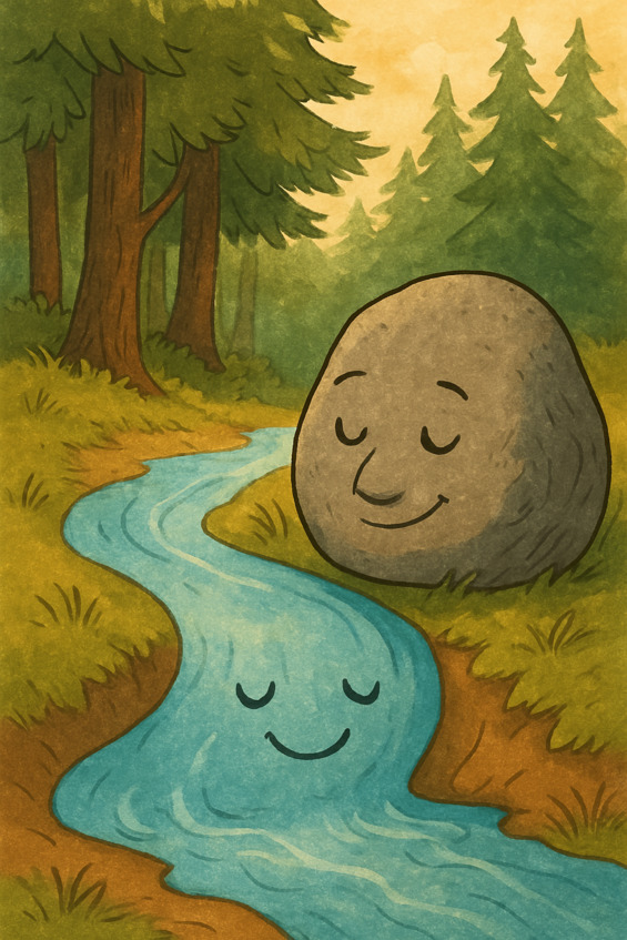 В это время Камень, как символ истины и стойкости, продолжал оставаться неподвижным, не вмешиваясь, но всегда оставаясь там, где Вода могла найти свою основу. Его сила была иной – глубокой, невидимой, но ощутимой для тех, кто искал правду. Камень испускал тихие, глубокие вибрации, которые пронизывали землю и достигали воды. Вода, текучая и податливая, чувствовала эти вибрации, как далёкий зов. Они напоминали ей о её истоках, о свободе, которой она обладала. Вибрации говорили: «Ты – не то, что о тебе говорят. Ты – то, кем ты решишь быть.«Вода поняла, что она должна быть свободной. Она должна была научиться течь по своему руслу, не подчиняясь чужой воле.