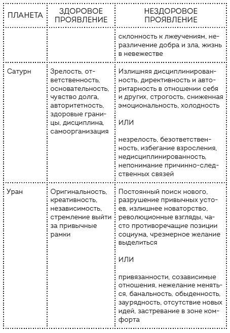 В этой части кратко опишу здоровые и нездоровые проявления планет, знаков и домов в жизни. Нездоровые состояния чаще всего будут проявляться как переход в одну или в противоположную крайность, поэтому я буду описывать их как два полюса.
