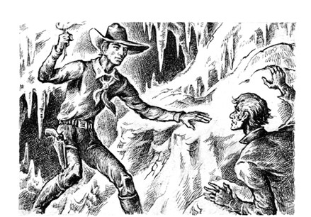 Глубоко в недрах горы, в кромешной тьме, изнемогая от духоты, боролся за свою жизнь человек. Его кожаные куртка и штаны, босые ноги и волосы были мокрыми. Он сидел в выемке почти вертикального ответвления пещеры и лихорадочно на ощупь изучал свое крайне неудобное укрытие. Голова его гудела от оглушительного шума воды, которая чуть ниже, всего в нескольких метрах от него, со страшной силой неслась по пустотам горы. Он только что каким-то чудом вырвался из лап этого смертоносного подземного потока. Ему еще самому было непонятно, как это могло случиться, но он уже немного пришел в себя. У него все болело: голова, плечи, колени. Вода играла с ним, как с мячиком, била его о стены, швыряла в бездны. Ружье, шляпу и нож он потерял, зажигалка намокла. У него не осталось ничего, кроме собственной шкуры и мокрой одежды. И это в темном чреве горы, притом что он не имел ни малейшего представления, как из нее выбраться!