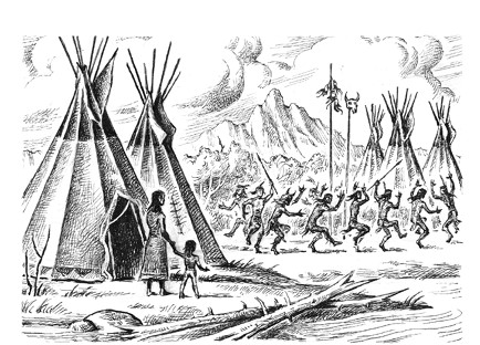 Добрый дух, дай нам бизонов…«Иначе мы умрем от голода», – думал каждый. Но вслух этого никто не произносил. Пойти на юг, навстречу бизонам, было бы самоубийством. Ведь на пути стоял военный лагерь пауни, которые тоже пели: «Дай нам бизонов…»