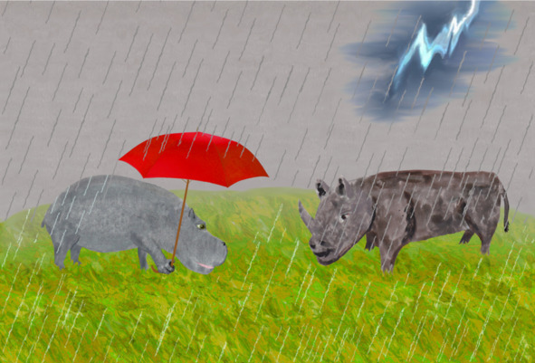 Бегемот сказал с утра «Носорогу нет преград,Другу-носорогу: Что мне бездорожье!«Нынче льёт, как из ведра, Не страшны ни дождь, ни градРазвезло дорогу. Шкуре носорожьей.Ты немного подожди: Смело мчу, куда хочу.Вот окончатся дожди…». Прочь с дороги: растопчу!».