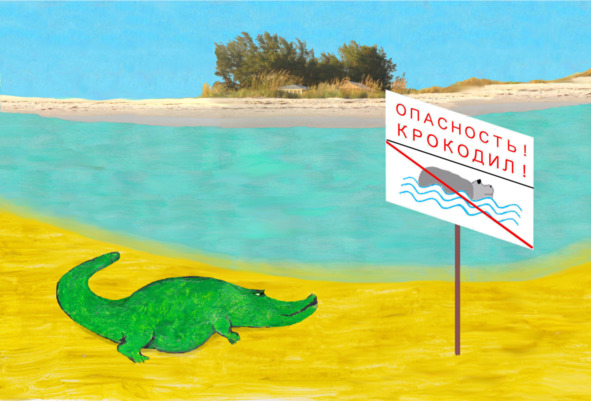 БЕСЕДА С КРОКОДИЛОМЯ спросил у крокодила:– Здесь овца не проходила?А злодей лежит на днеИ подмигивает мне.ЖАДНЫЙ КРОКОДИЛ