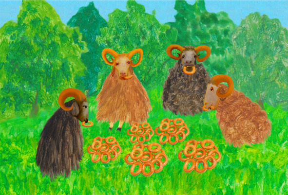 Четыре барана в лесу на полянкеСидели и дружно жевали баранки.Бараны жевали баранки три дня.Бараны позвали на помощь меня:– Приди и доешь поскорее баранки,Не то мы всю жизнь просидим на полянке.