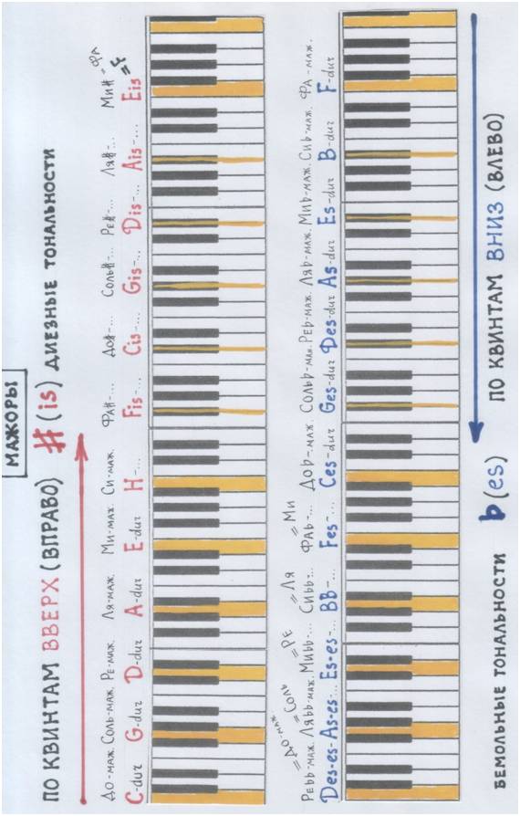 Рассмотри модели на следующей странице. Мысленно «погуляй» по солнечным квинтам клавиатуры.