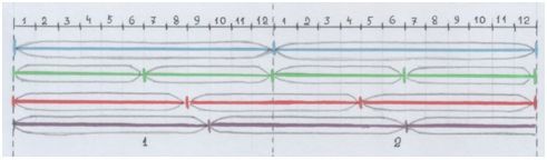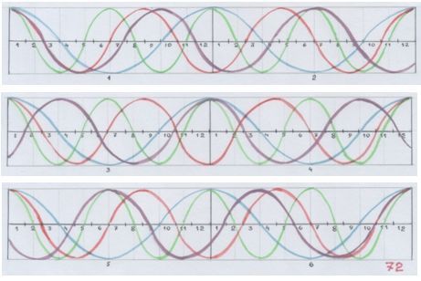 И даже количество кульминаций (гребней волн) соответствует частотам интервалов. Посчитай: