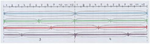 Пифагор, конечно, мог сопоставлять вовсе и не волны, а отрезки струн. Например, вот так: