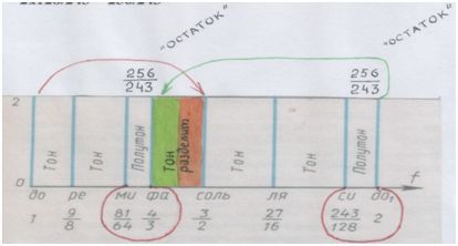 Итак, в кварте ДО1-ФА частоту ФА разделим на частоту соседнего МИ:
