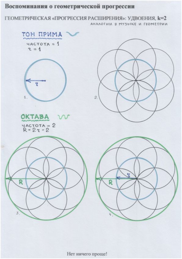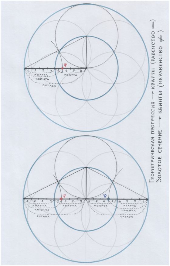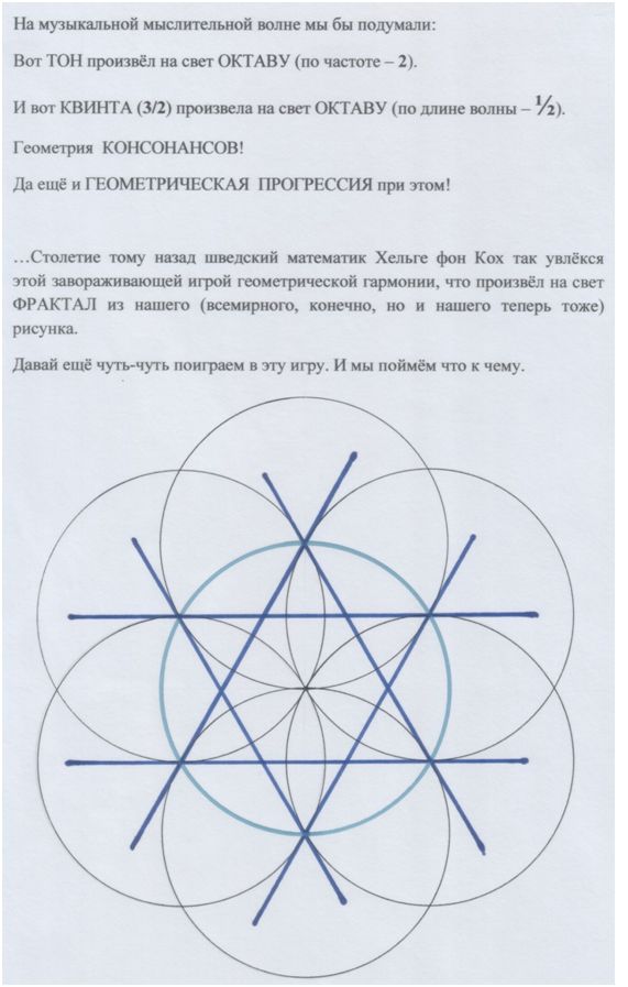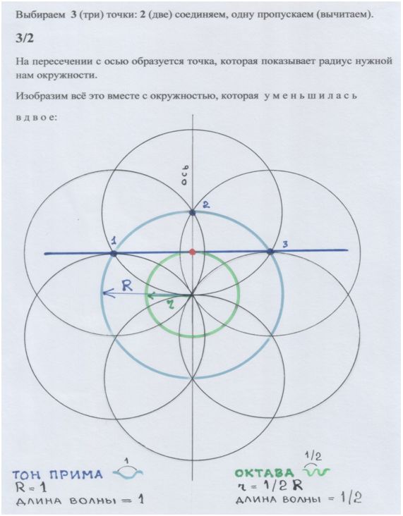 А пересказывать то, что показывает геометрия, мы будем на привычном нам языке. Так и поступают исследователи музыки. Они переводят древние знания на привычные нам языки с их знаками: буквы латинского (или русского) алфавита (вот! греческие названия нот даже не употребляются), арабские (индийские) и латинские цифры для обозначения чисел.