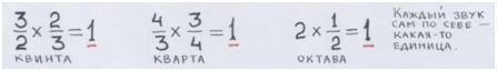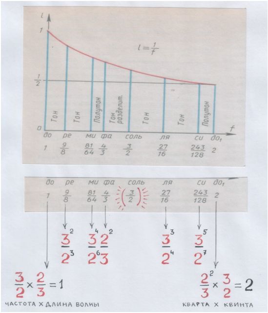 Кстати, ты заметил, что все числа – это частоты: числитель дробей больше знаменателя, «большее на меньшее», большее число в отношении к меньшему. У длин волн – наоборот: меньшее число в отношении к большему. Надеюсь, ты помнишь про этот перевёртыш/перекрёст.