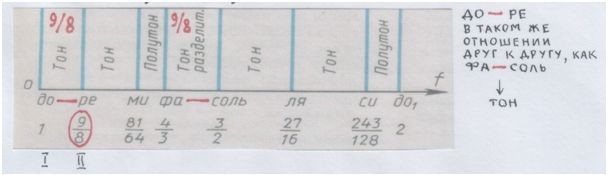 Отношения частот прямой квинты и её обращения кварты произвело на свет новое отношение и новый звук: 9/8.