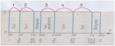 Для пифагорова музыкального строя имеют значение именно интервалы.