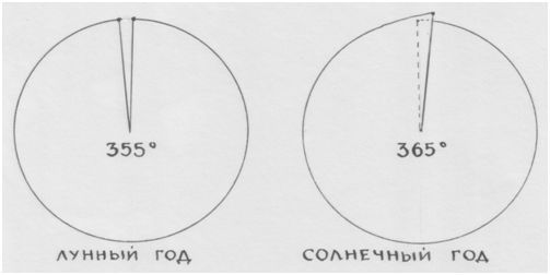 И здесь тоже не всё так просто, как в египетском мифе о Времени. Ведь солнечный год чуть больше 365 дней, за 4 года набегает своя «комма» примерно в одни сутки. Да и лунный год – не ровно 355 дней. Мы округляем, чтобы увидеть главные пропорции, увидеть структуру. Мы привыкли всё сводить к завершённости, к уравнениям. А движение существует благодаря неравенствам – пусть небольшим, с разницей в «чуть-чуть», но неравенствам.