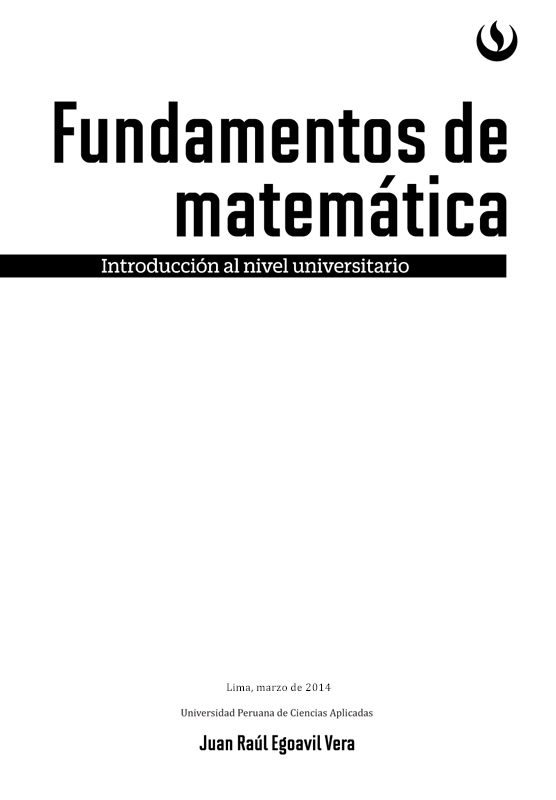 Egoavil Vera, Juan Raul. Fundamentos de Matemáticas. Introducción al nivel universitario