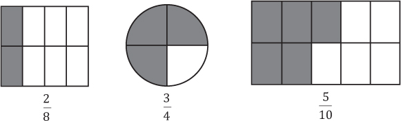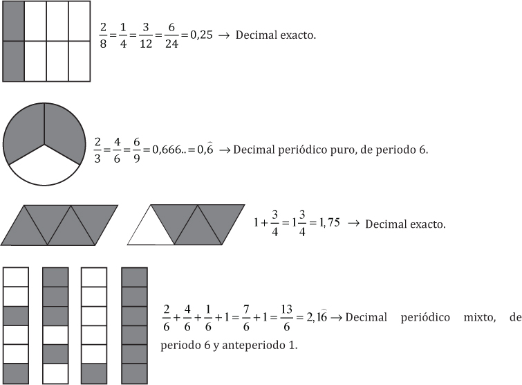 Las partes sombreadas de los siguientes objetos están representadas por números racionales.