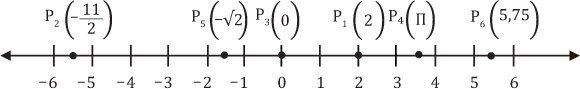 En general, dado un punto P cualquiera en la recta, al número real a se le llama coordenada o abscisa de P y se denota por P(a), que se lee: punto P de coordenada a.