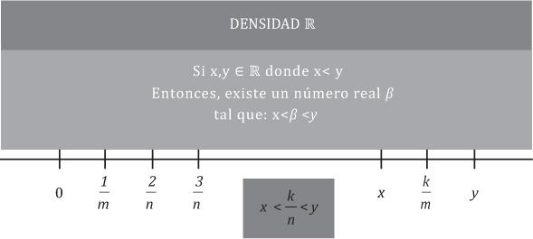 Podríamos continuar indefinidamente el procedimiento de promediar dos números racionales, encontrando siempre que hay otro racional entre dos racionales, por más próximos que estén. Por ello decimos que Q es un conjunto denso.
