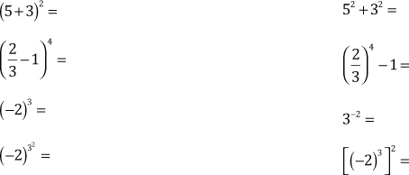 Como se apreció en el ejercicio anterior, la potencia no es distributiva con respecto a la suma ni a la resta.