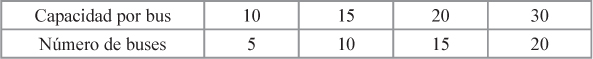 b. Número de buses, de igual capacidad que se necesita contratar para transportar a 300 deportistas: