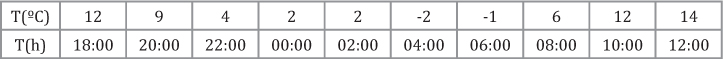 12. En la siguiente tabla de valores se registran las temperaturas desde las 18 horas de un día hasta las 12 del día siguiente: