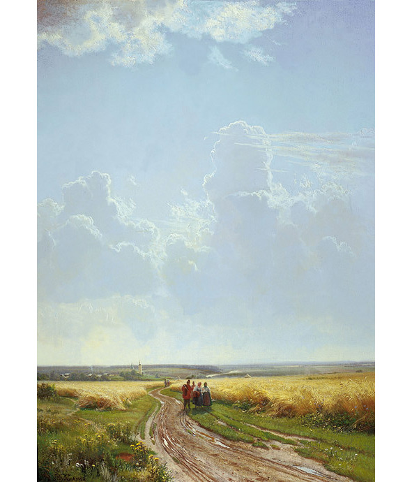 Окрест Москвы звенящее раздолье. Дорога мокрой колеёй во ржи Теряется… Лазурное приволье Пронзают легкокрылые стрижи. С покоса возвращаются крестьяне, Перемежая шуткой разговор, Делясь заботами и новостями… А взгляд плывёт в безудержный простор. Туда, где свечкой белой колокольня Стремится вознестись на небеса, Где в облаках мечтам и мыслям вольно, Где ветры – ангельские голоса — Поют свой гимн… И тихим отголосьем, Золотовейным забываясь сном, Им хором вторят хлебные колосья, В ответ кивая налитым зерном. Приветом ранним прослезилось небо… Над нивой солнце катится в зенит, Сливаясь с благодатной песней хлеба, Дыханьем знойным колос золотит. 2011 г.