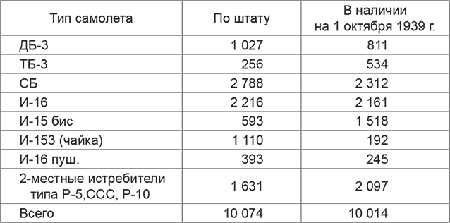 В настоящее время ВВС РККА состоят из: 48 управлений авиабригад, 55 истребительных полков, 40 полков СБ, 13 полков ДБ-3, 4 полков ТБ-3, 5 легко-бомбардировочных полков, 13 легко-штурмовых полков, 6 смешанных полков, 93 авиабаз.