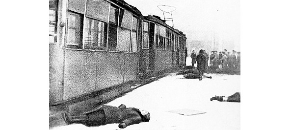 По дороге из школы я нередко забегал к Рабиновичам, оставшимся в городе и не рискнувшим на еще один очередной в их жизни самостоятельный вояж в неизвестность. Володя, пока по городу ходили трамваи, ездил на свой завод. Дочь Минюся продолжала заботиться об эвакуации семьи вместе с сотрудниками её Пушкинского дома. Моя любимая добрая Белла колдовала над тем, чтобы семья не сразу умерла с голода, не забывая между тем мельком подсунуть хоть что ни будь и мне. В один из дней похода в школу (по причине отсутствия ночной бомбежки) на перекрестке улиц Кирочной (тогда Салтыкова Щедрина) и Чернышевского встретил обычный грязный грузовой трамвай. Оба вагона до верха нагружены то ли ветками, то ли бревнами, плотно уложенными друг на друга. Вблизи понял- тела погибших от голода. Два вагона мертвецов. Так обыденно, так открыто, одеревеневшие тела раздеты. Окружающие пешеходы реагируют на это абсолютно спокойно. Одинокие трупы на детских санках или присыпанные снегом возле подворотен я уже привык встречать, и притерпелся, но так. Вместо школы вернулся домой, а через пару дней слег с температурой за 40 градусов. Это был не нервный шок, а самая примитивная, запоздалая, детская, теперь ещё более опасная корь.
