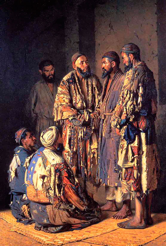 Нищенство здесь сильно развито и хорошо организовано. Нищая компания составляет род братства с одним главою; глава этот потомок того святого, который дал организацию нищенствующему люду и закрепил за ним полученную от общества землю, даровую для всех желающих пристроиться на ней, сделаться диваном. Дом этого главы, очень порядочный, непохожий на грязный домишко его подчиненных, стоит тут же близ дороги, близ спуска с городской улицы на площадку календархана. Я несколько раз хотел повидаться с этим тюрою нищих (тюра – господин), порасспросить его хорошенько об истории и времени основания его нищенствующего ордена, но его постоянно не было дома: один раз говорили, что тюра в Чемкенте, другой раз в Ходженте или в каком-нибудь другом городе: дело в том, что, будучи главою нищего братства, он живет то в том, то в другом из них по нескольку месяцев в году: собирает с своих подчиненных доходы, судит и рядит их, если нужно. Доходов собирает он, надобно думать, немало, потому что каждый диван обязан ежедневно внести ему все полученное им в продолжение дня, исключая того, что нужно себе на пищу и необходимую одежду.