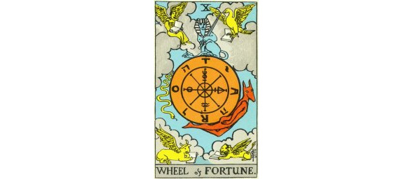 Сфинкс с мечом, сидящий наверху Колеса – говорит об устойчивости и равновесии законов Вселенной в непрерывном движении. Сфинкс с мечом символизирует мудрость, тайну и необходимость проницательности и принятия решений. Сфинкс ассоциируется с загадками и идеей разгадывания тайн. Его присутствие на карте Колеса Фортуны предполагает, что нужно использовать свой интеллект и интуицию, чтобы ориентироваться в постоянно меняющихся жизненных циклах. Меч олицетворяет силу правды, ясности и способности разрубать иллюзии. Вместе эти символы напоминают нам о необходимости делать мудрый выбор и искать понимания среди непредсказуемой природы существования.