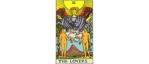 На карте «Влюбленные» изображены мужчина и женщина, стоящие рядом. Они представляют концепцию двойственности и союза между противоположностями. Фигуры на карте изображаются обнаженными, что символизирует уязвимость, подлинность и открытость в отношениях. А так же указывают на честность, безопасность, невинность. Два гендера (мужчина и женщина) символизирует выбор, двойственность.