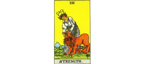 Героиня изображена уверенно приручающей льва, который представляет собой грубые и первобытные аспекты самой героини. Это символизирует способность контролировать и использовать свою внутреннюю силу и инстинкты. Спокойное и нежное поведение героини при обращении со львом предполагает силу терпения, сострадания и самообладания. Оно представляет собой идею о том, что истинная сила исходит из внутреннего спокойствия и эмоционального мастерства, а не из агрессии или силы. В целом поза героини на карте символизирует способность преодолевать трудности, сталкиваться со страхами и сохранять внутреннее равновесие и гармонию перед лицом невзгод. Она побуждает искателя использовать свою внутреннюю силу и эффективно направлять ее, чтобы преодолевать жизненные препятствия.