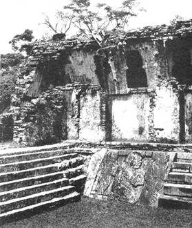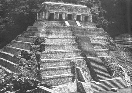«В 1949 году под руинами одного из зданий дворца Паленке мы обнаружили великолепную каменную плиту, на которой просматривались 262 иероглифа и изображение сцены подношений. Персонажи и знаки выполнены очень глубоким рельефом. Паленскому искусству присущи удивительное чувство композиции, тонкость и строгость. Начальная дата предложена в фигурном варианте, то есть в виде фигур людей и животных, когда первые означают числа, а вторые – периоды. Таким образом майя подчеркивали теснейшую связь между человеком и временем».
