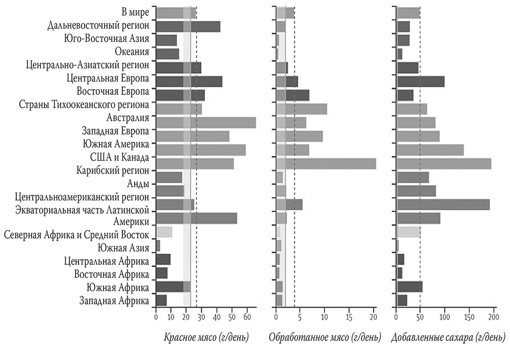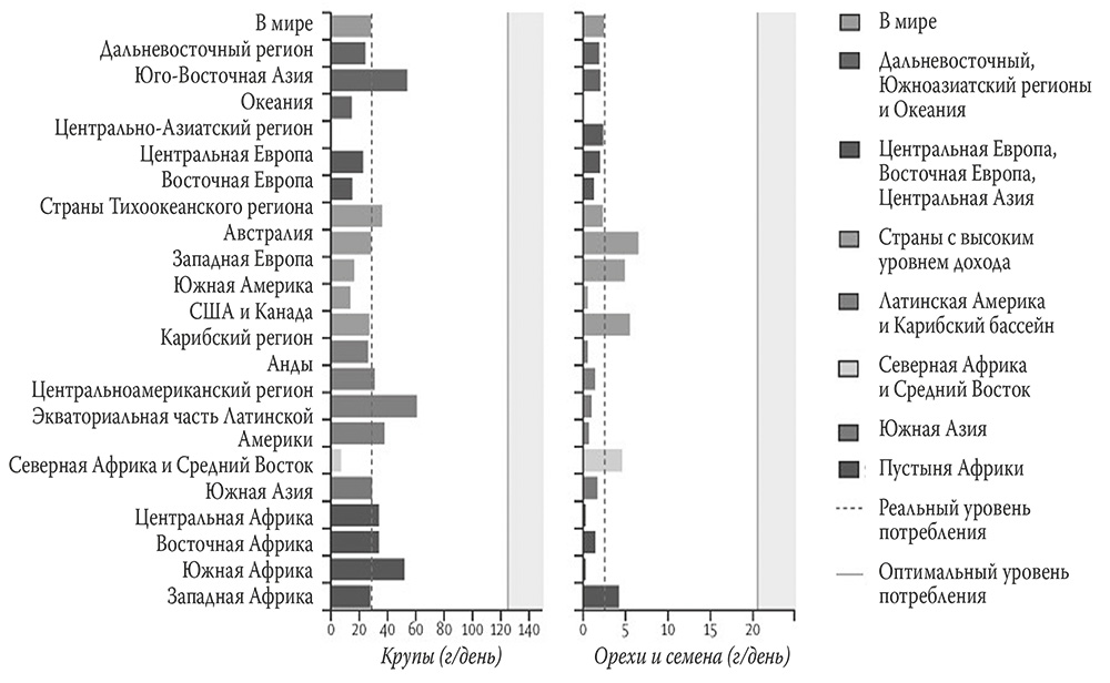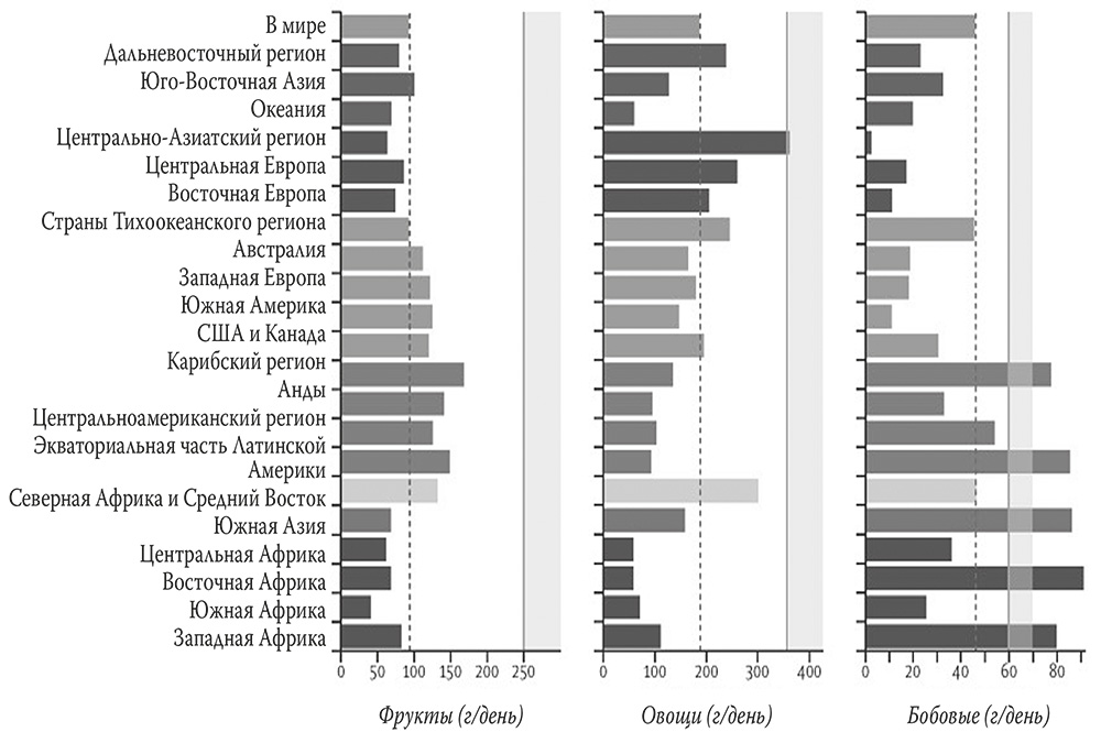 В Латинской Америке, в Южной Азии и в Африке население слегка перебарщивает с бобовыми. Но глобально человечество недополучает питательных веществ из пищи.