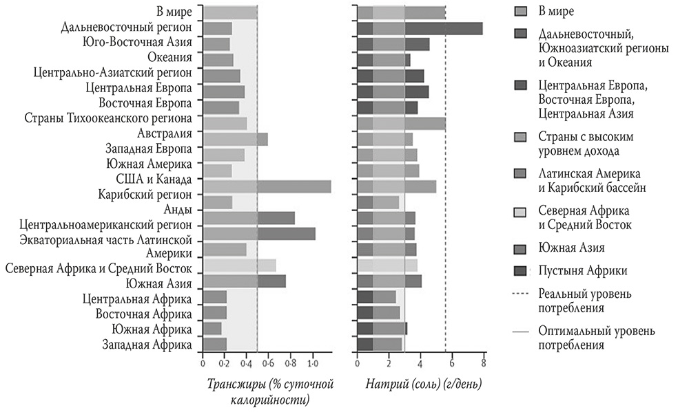 В то же время обзор диетических рисков (QR-код 71), опубликованный в журнале «Ланцет» (The Lancet) в 2019 году, пятерку главных пищевых опасностей в глобальном масштабе представляет вот так: