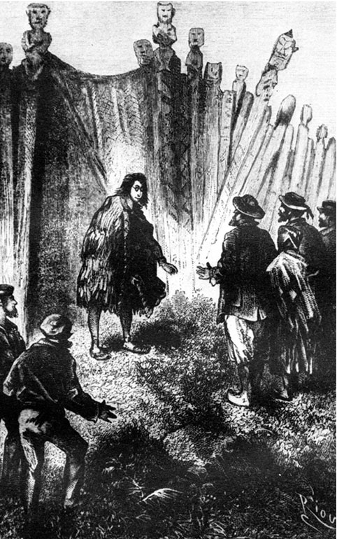 После убийства Кара-Тете Паганель, как и Роберт, воспользовался сумятицей и выбрался из па. Но ему не так посчастливилось, как юному Гранту: он угодил в другое маорийское поселение. Здесь управлял вождь высокого роста, с умным лицом, гораздо более развитой, чем все его воины. Он говорил на правильном английском языке и приветствовал гостя, потершись кончиком носа о его нос.
