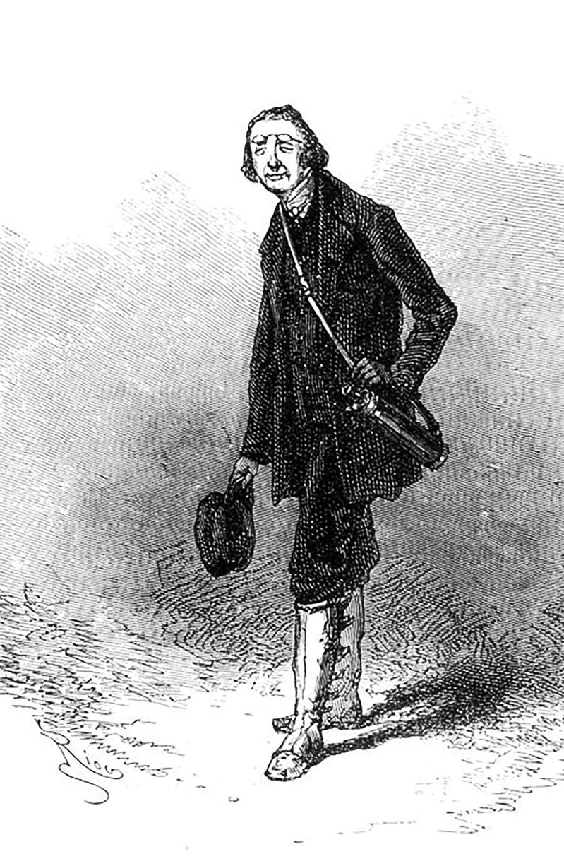 Этому высокому, сухощавому человеку могло быть лет сорок. Он напоминал длинный гвоздь с большой шляпкой. Голова у него была круглая и большая, лоб высокий, нос длинный, рот большой, подбородок острый. Глаза скрывались за огромными круглыми очками, и особенная неопределенность во взгляде говорила о никталопии1. Лицо у него было умное и веселое. В нем не было той неприветливости, какую напускают на себя некоторые для важности. Такие люди из принципа никогда не смеются, пряча под маской серьезности свое ничтожество. Напротив, непринужденность и милая бесцеремонность этого незнакомца ясно показывали, что он умеет видеть в людях и вещах только хорошее. Хоть он еще не открывал рта, чувствовалось, что он любит поговорить. Было ясно также, что он из тех страшно рассеянных людей, которые смотрят и не видят, слушают и не слышат. Незнакомец был в дорожной фуражке, обут в грубые желтые ботинки и кожаные гетры. На нем были бархатные коричневые панталоны и такая же куртка с бесчисленными туго набитыми карманами, откуда торчали записные книжки, блокноты, бумажники, вообще масса столь же ненужных, сколь и обременительных предметов. Через плечо у него висела на ремне подзорная труба.