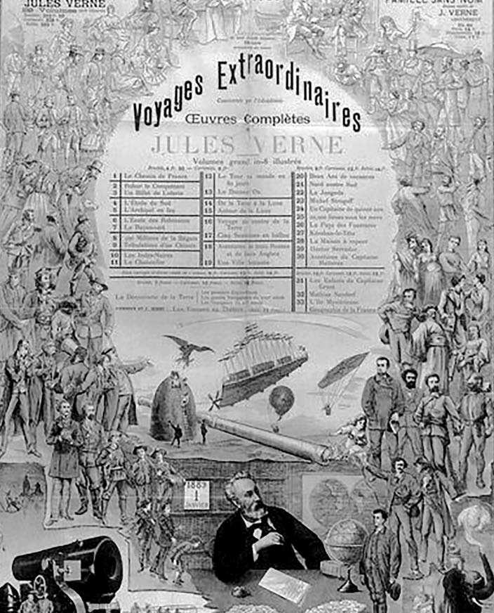 Один цикл «Необыкновенные путешествия» включает такие шедевры, как «Путешествие к центру Земли» (1864), «Путешествие и приключения капитана Гаттераса», «С Земли на Луну» (1865), Дети капитана Гранта» (1867), «Вокруг Луны» (1869), «Двадцать тысяч лье под водой» (1870), «Вокруг света за 80 дней» (1872), «Таинственный остров» (1874), «Михаил Строгов» (1876), Пятнадцатилетний капитан» (1878), «Робур-Завоеватель» (1886).