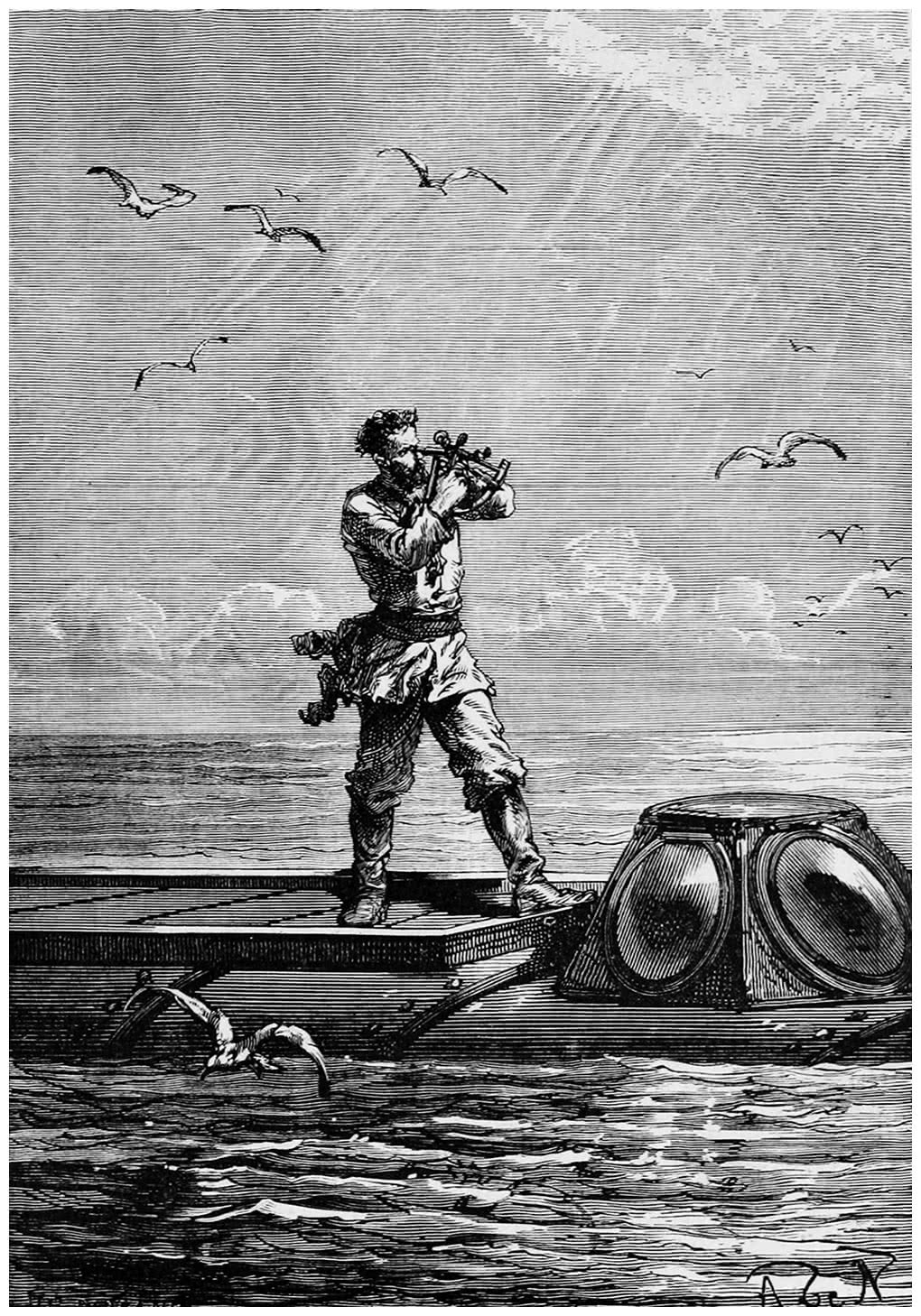 – Позади рубки рулевого установлен мощный электрический рефлектор, лучи которого освещают море на расстояние в полмили.